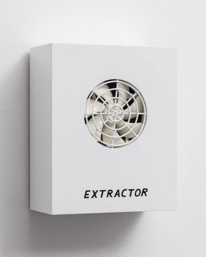 “[A] satirical, sound-based installation with shrigley’s vocal imitation of extractor fans and a series of mock extractor hoods demonstrated the artist’s uncanny ability to play with the mundane nature of banal objects and scenarios. inspired by the noisy judder of his foundry’s extractor fans, shrigley has recorded his own vocal imitation of the machines in four different octaves. the harmony is played on an endless loop.”